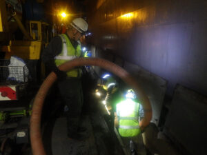 施工概要 工種 側溝清掃 担当部署 東京営業所 施工時期 2025.6 業務詳細 線路沿いに設置された側溝の清掃作業を実施しました。列車運行に影響を与えないよう、夜間の限られた作業時間内で、高圧洗浄機と汚泥吸引車を用いて … 続きを読む 線路沿いの側溝清掃作業