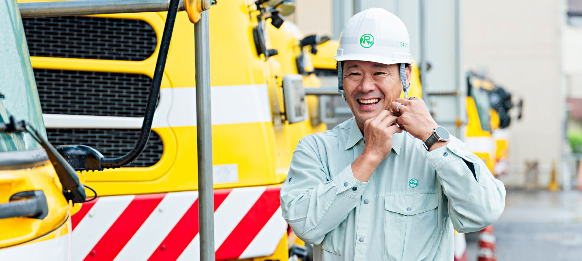 まだ前職に勤めていた頃、作業中の路面清掃車を見て、自分も操作してみたい!と思ったことが最初のきっかけです。路面清掃車が通った後、明らかに綺麗になった道路を見て、やりがいを感じながら働けるのではないかと思いました。また、前職は家電販売の営業として働いていましたが、個人売上を求めるのではなく、「チームで仕事をする」ことにも憧れがありました。